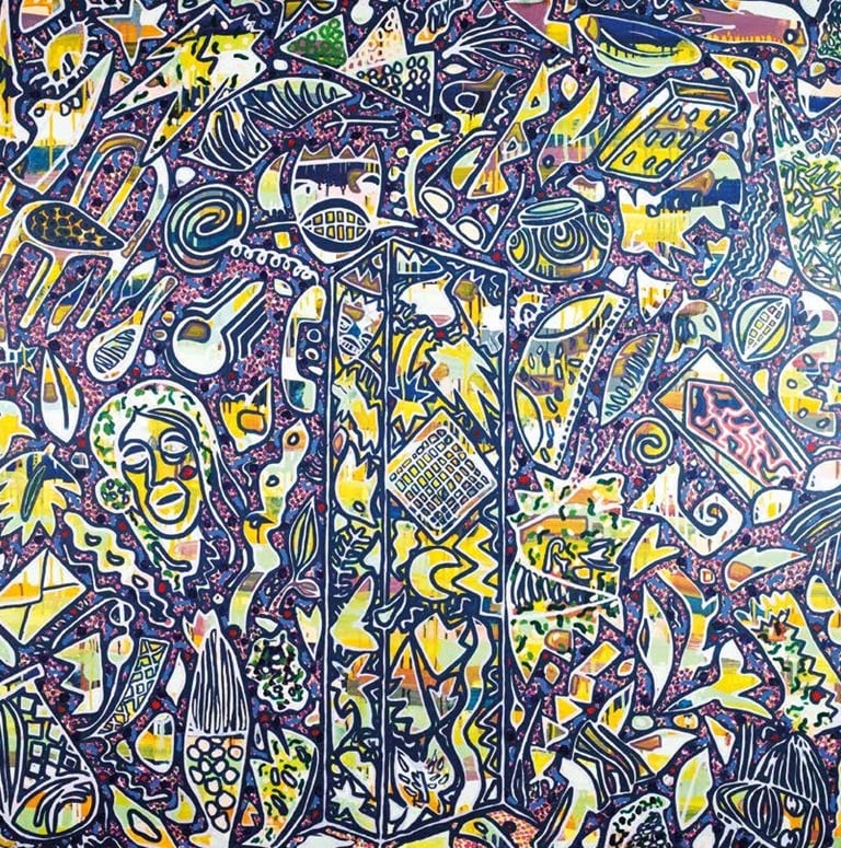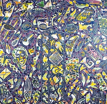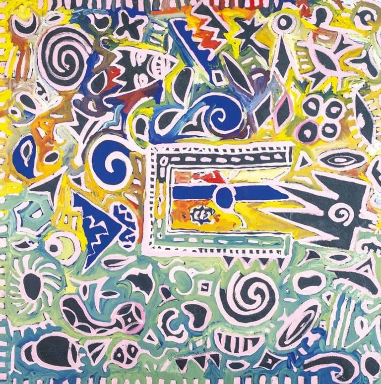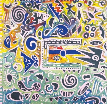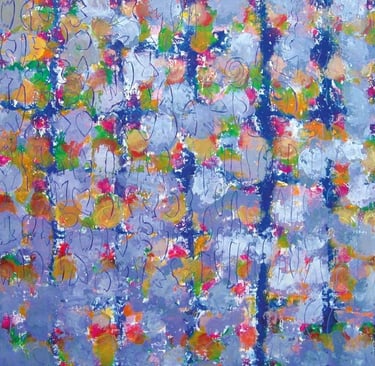 Abstract and often undefined, his shapes evoke a floating, dynamic movement, blurring the boundary between painting and engraving. Through transparent layers and overlapping forms, his large-scale works achieve a striking depth, generating a sensorial experience where bright colors and neutral tones alternate to create a vivid yet subtle atmosphere.