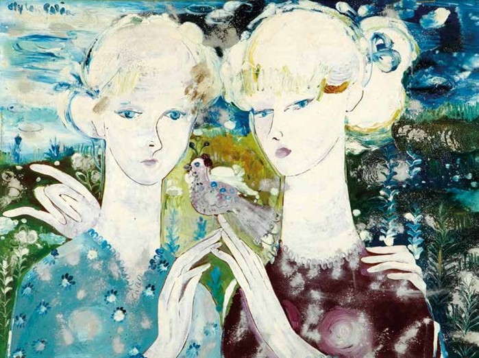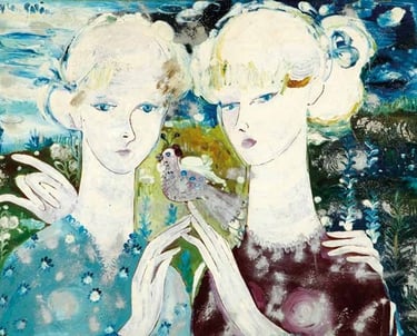 In the 1930s, Ben Salem began to explore more feminine subjects, using surreal colors and fluid lines to create dreamlike portraits of women. After spending time in Sweden during the 1950s, his work shifted toward even more ethereal scenes, featuring soft pastels and symbols of nature.